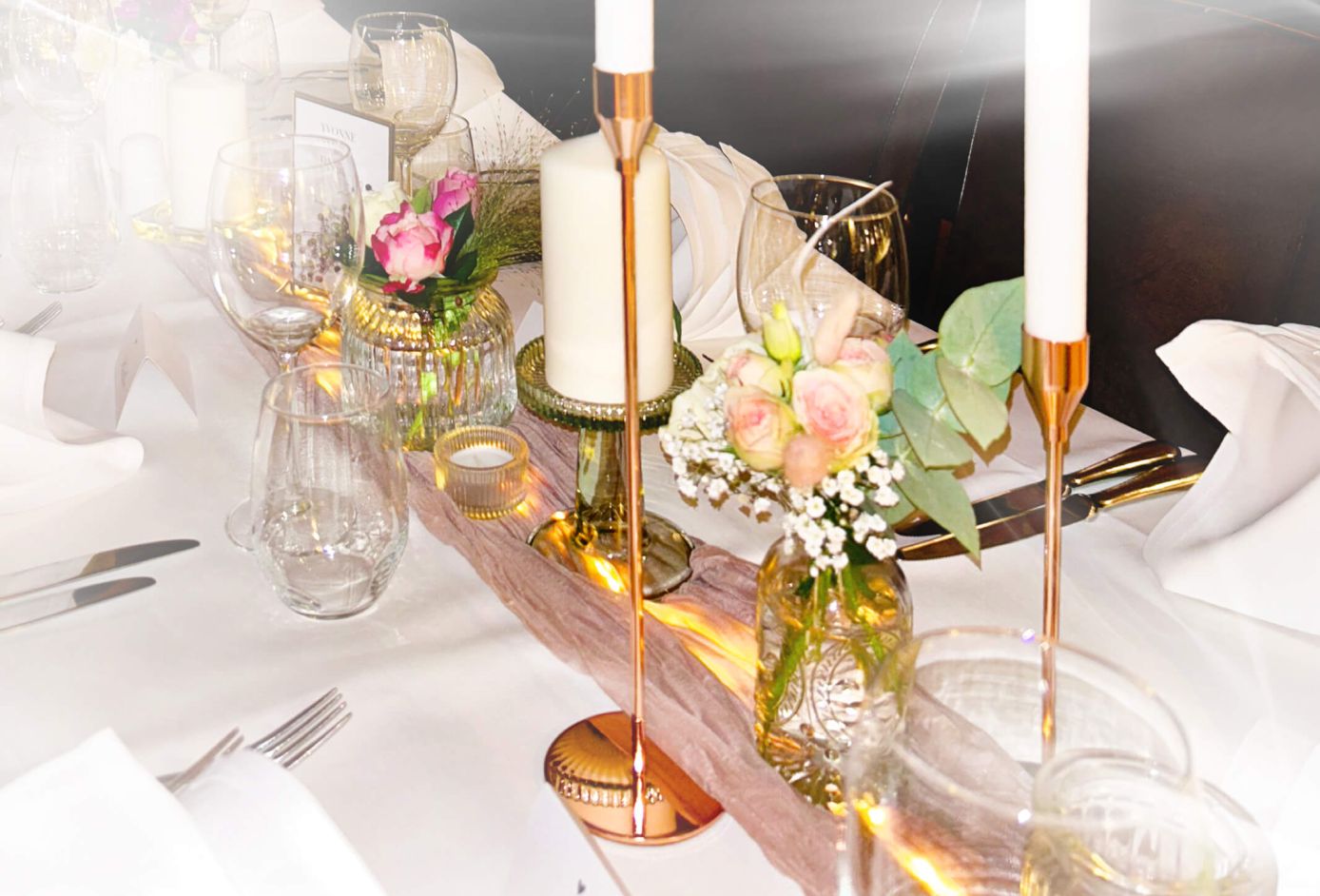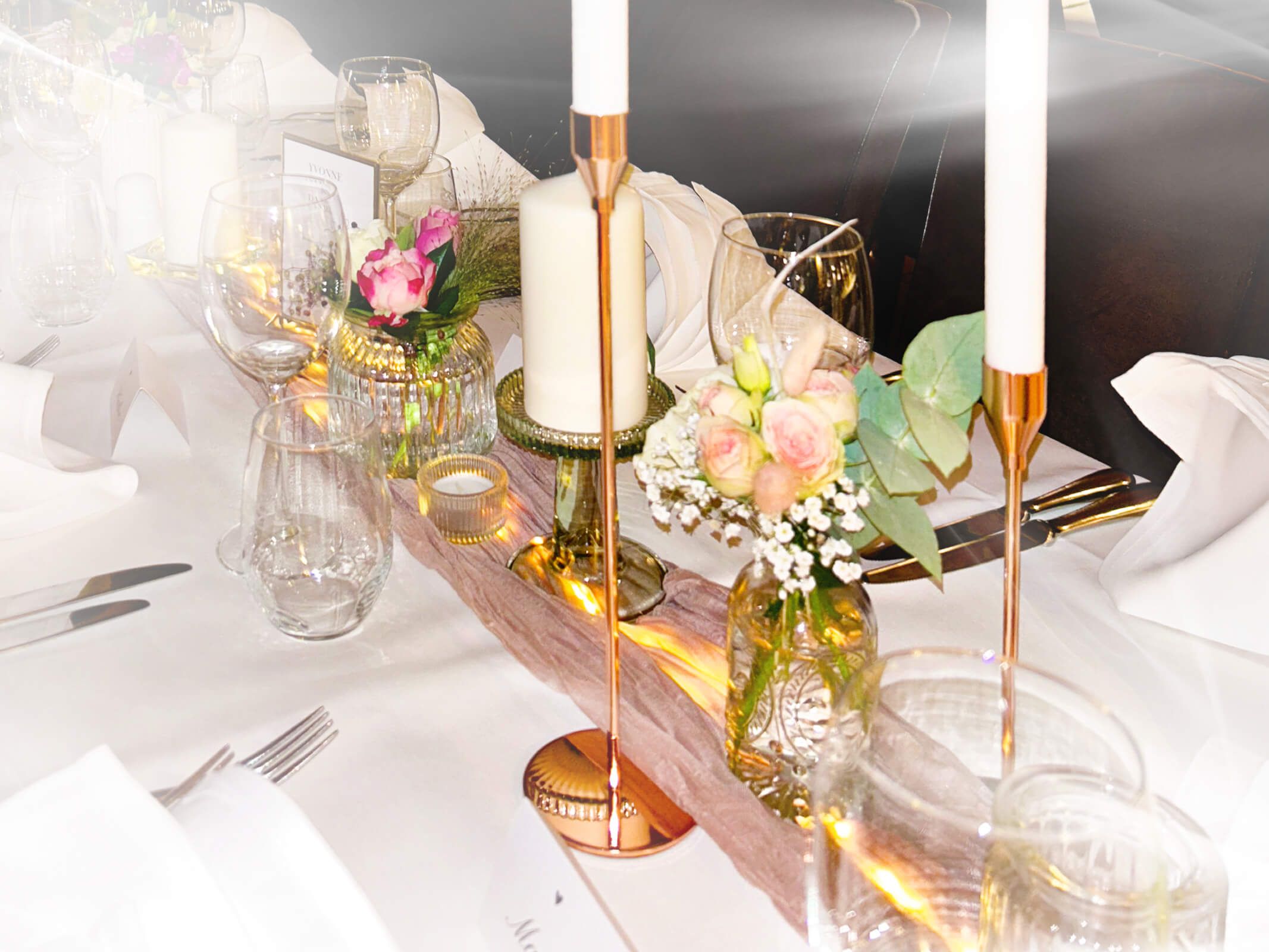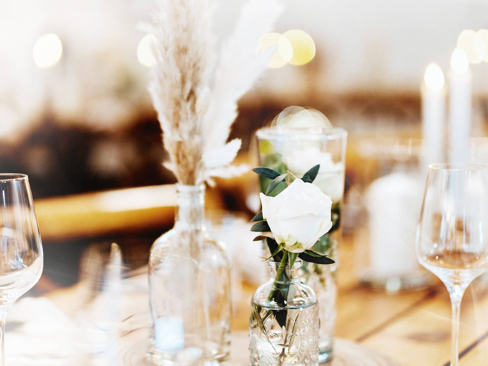 Unsere Verleihobjekte umfassen alles, was du für ein erfolgreiches Event benötigst. Von eleganten Vasen für deine Tischdekorationen bis hin zu unseren wunderschönen Boho-Gestecken bieten wir dir erstklassige Qualität und Vielfalt, um deine Feier einzigartig zu gestalten. Entdecke die Möglichkeiten und lasse dich inspirieren.